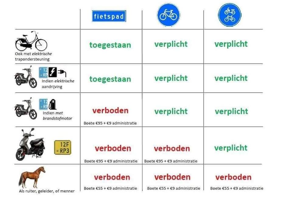 VVN; Op het onverplichte fietspad (bord G13) mag je alleen met een snorfiets met elektromotor of uitgeschakelde verbrandingsmotor komen.