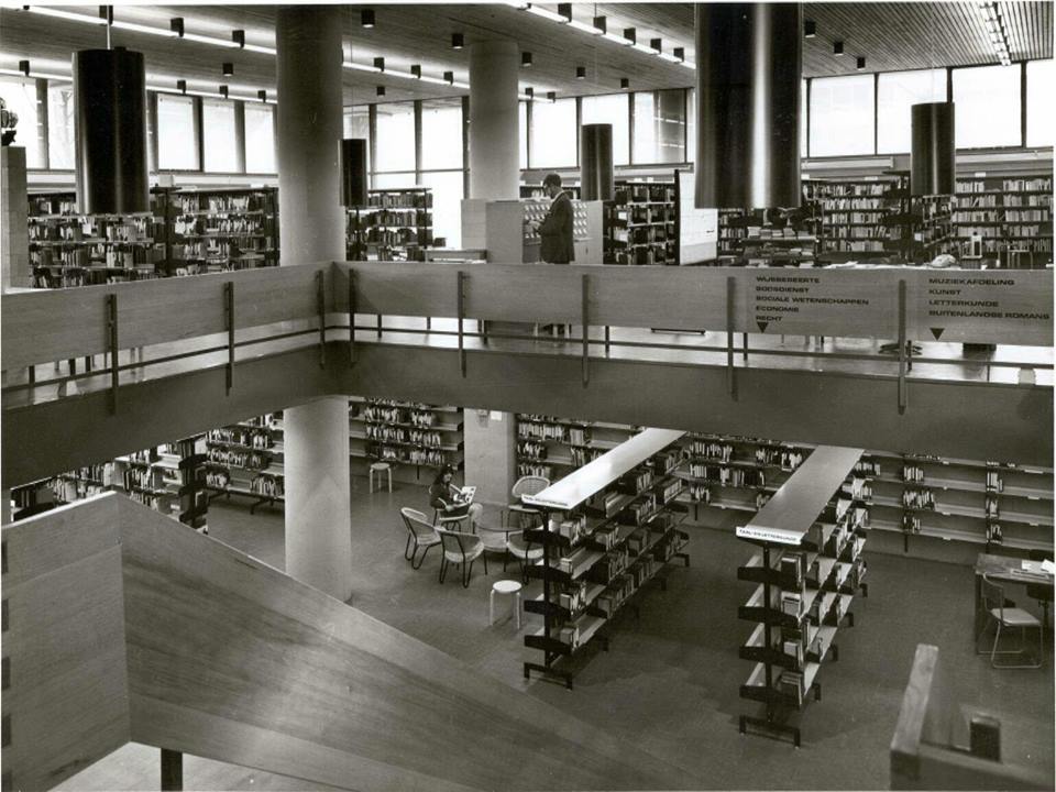 Op de eerste foto de studieplek van de bibliotheek aan de Pijpenstraat 15. De 2e foto de bibliotheek in de oude Klanderij aan de Boulevard 1945 en de 3e foto de studiezaal van de openbare bibliotheek in het het vroegere Blijdensteinhuis aan de Langestraat 9.