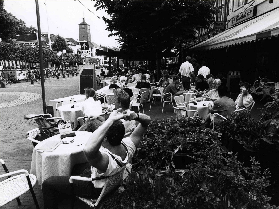 Oude Markt 5-6 Vanaf café Graffity en café De Kater richting Langestraat 1990.jpg