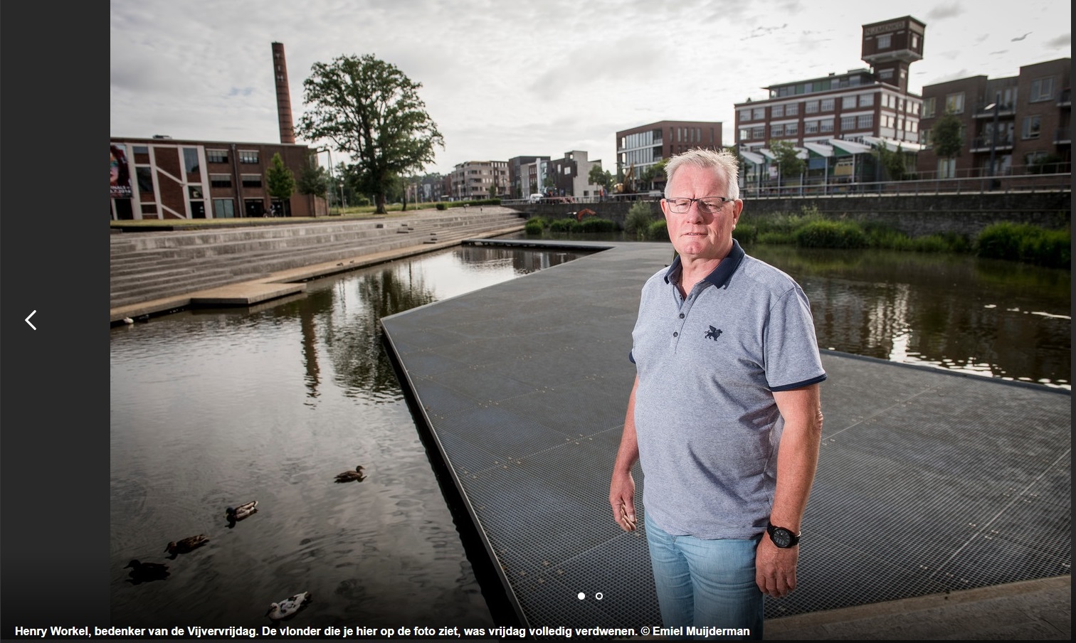 Henry Workel, bedenker van de Vijvervrijdag. De vlonder die je hier op de foto ziet, was vrijdag volledig verdwenen. © Emiel Muijderman