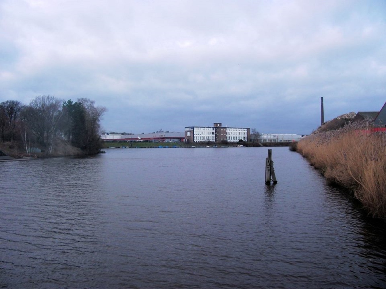 Brug is opgeblazen door onze terugtrekkende oosterburen, je ziet links de Vredestein. Wat je niet ziet is de zijtak van het kanaal. Die is later gegraven en loopt nu langs de Vredesteinfabriek.