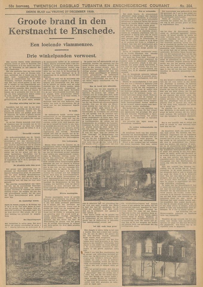 90 jaar geleden is in de kerstnacht van 1929 een grote brand geweest bij de winkelpanden (o.m. Presburg Schoenen) op de Hoek Haverstraat en Langestraat.