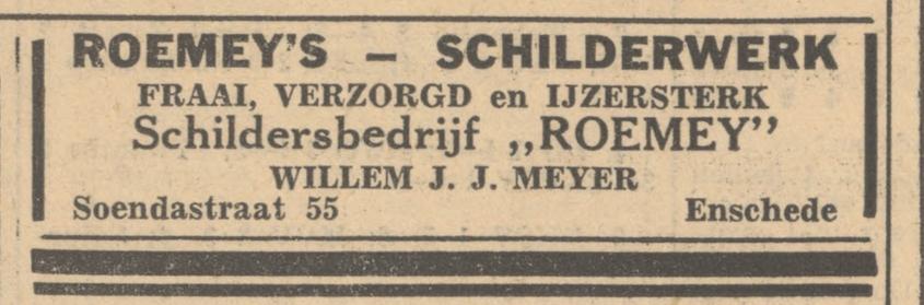Soendastraat 55 Schildersbedrijf Roemey WillemJ.J. Meyer advertentie Tubantia 21-6-1947