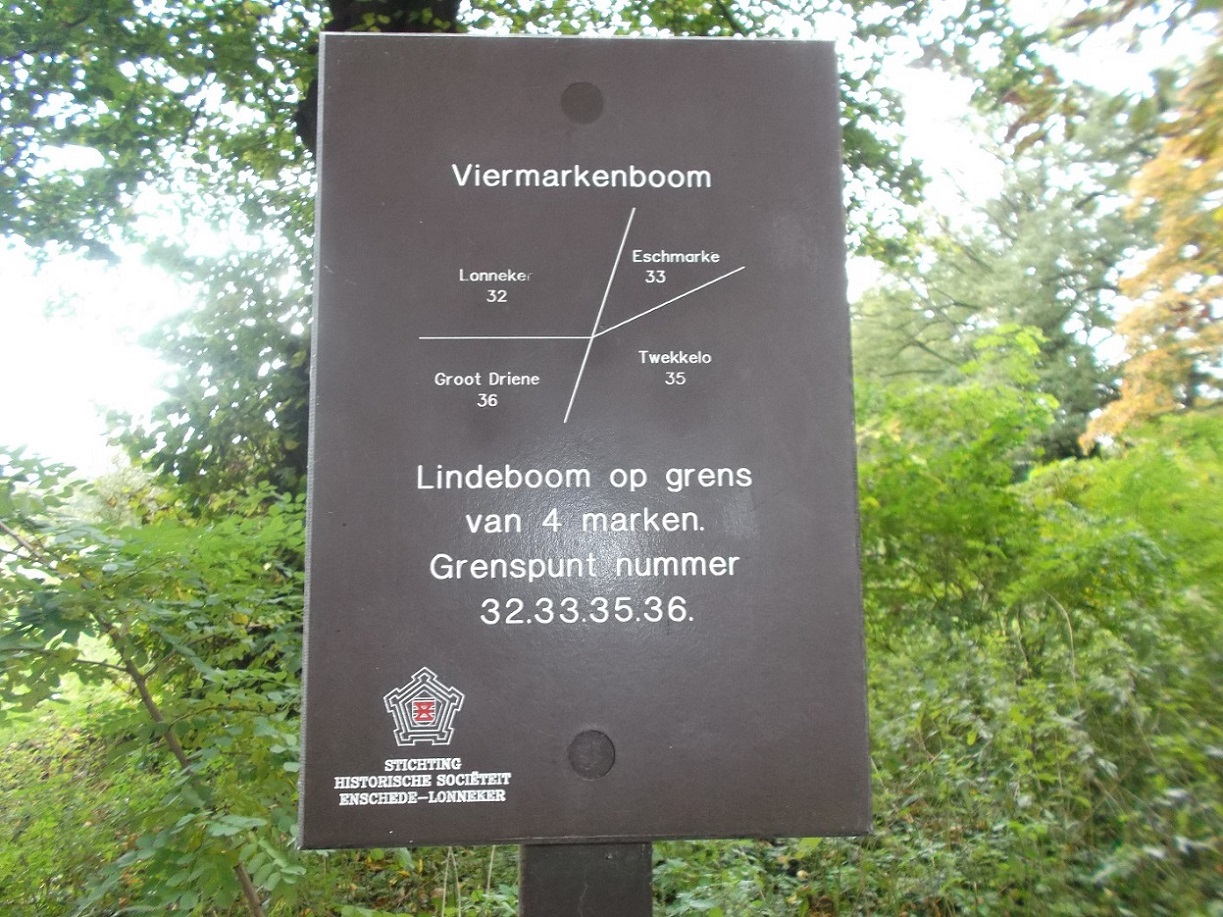De Viermarkenboom staat op de grenspunt van de 4 marken Lonneker, Eschmarke, Groot Driene en Twekkelo. Onderaan in de wortels van deze lindeboom is nog een restant te vinden van een gebouwtje dat daar heeft gestaan.