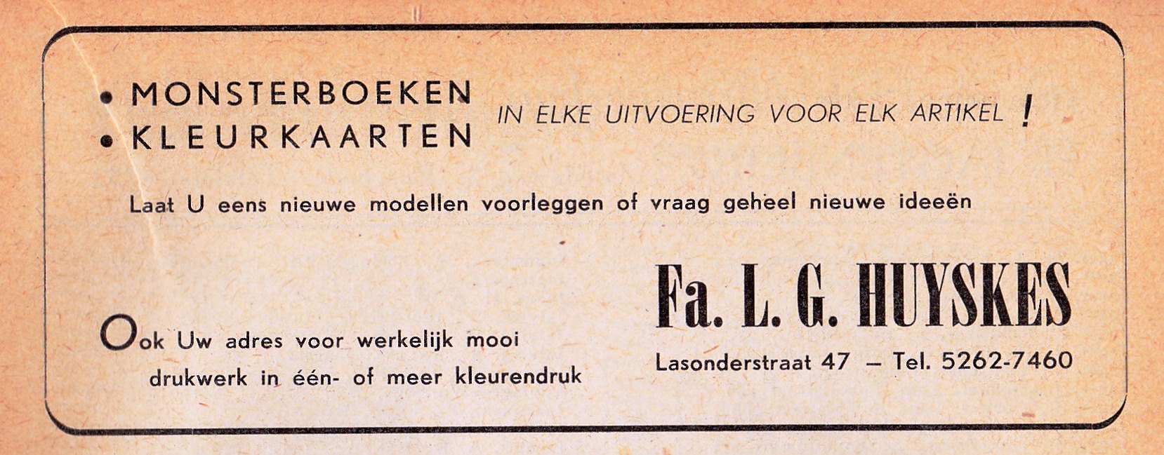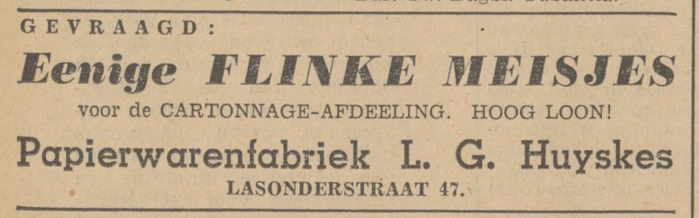 5262 Papierwarenfabriek, Cartonn.fabriek en drukkerij Fa. L.G. Huyskes Agent. en Commissie, Lasonderstraat 47