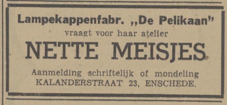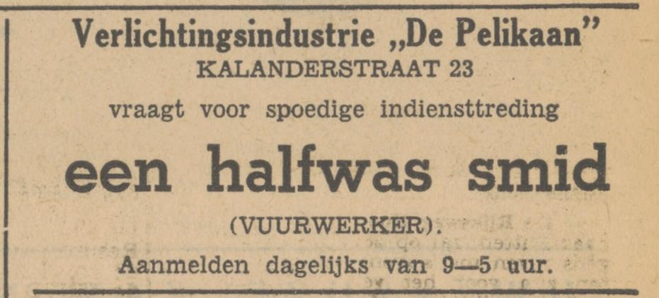 Pelikaan, de Fabr.v. mod.verlichting en kunstsmeedwerk, Kalanderstraat 23
