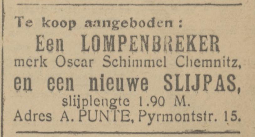 Pyrmontstraat 15 A. Punte advertentie Tubantia 25-10-1923
