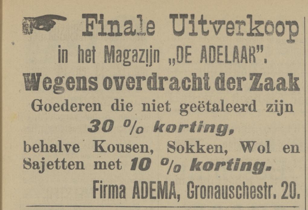 Gronausestraat 20 Firma Adema Magazijn De Adelaar advertentie Tubantia 12-7-1913