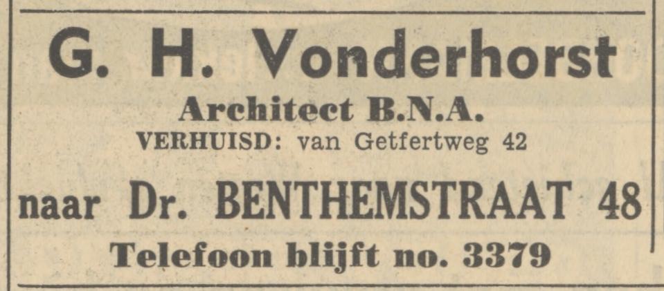 G.H. Vonderhorst is in 1951 verhuisd naar Dr. Benthemstraat 48.