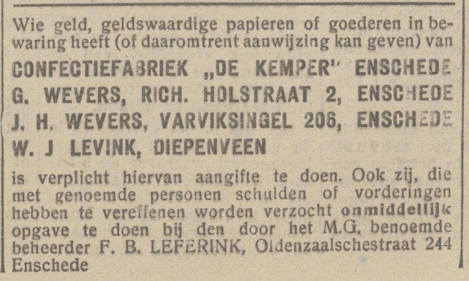 2395 Wevers, G. Directeur Confectiefabriek De Kemper. Richard Holstraat 2