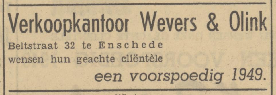 De fam. Olink woonde aan de Dennenweg 190. Het verkoopkantoor was gevestigd aan de Belststraat 32.