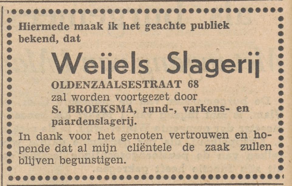 - Oldenzaalsestraat 68 Weyel's Volksslagerij advertentie Tubantia 26-10-1950.jpg (68.4 KiB) 2527 keer bekeken