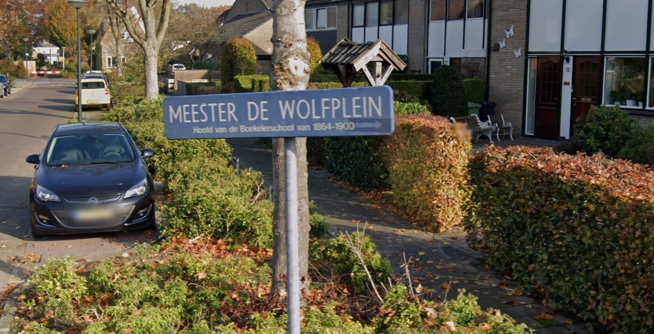 straatnaambord Meester de Wolfplein.