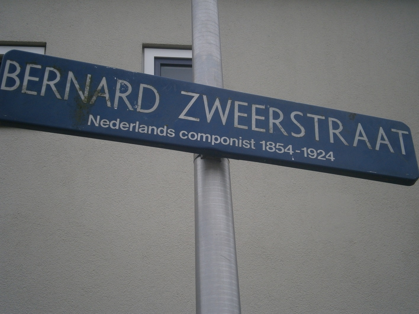 Naar Bernard Zweers, Ned. componist, geboren 18 mei 1854 te Amsterdam, overleden 9 december 1924 aldaar. Was hoofdleraar compositie aan het Amsterdams Conservatorium en streefde naar eenì eigen Ned. muziekstijl (27 maart 1951). bron: http://straatnamen.enschede.nl/straten/01201/?char=B