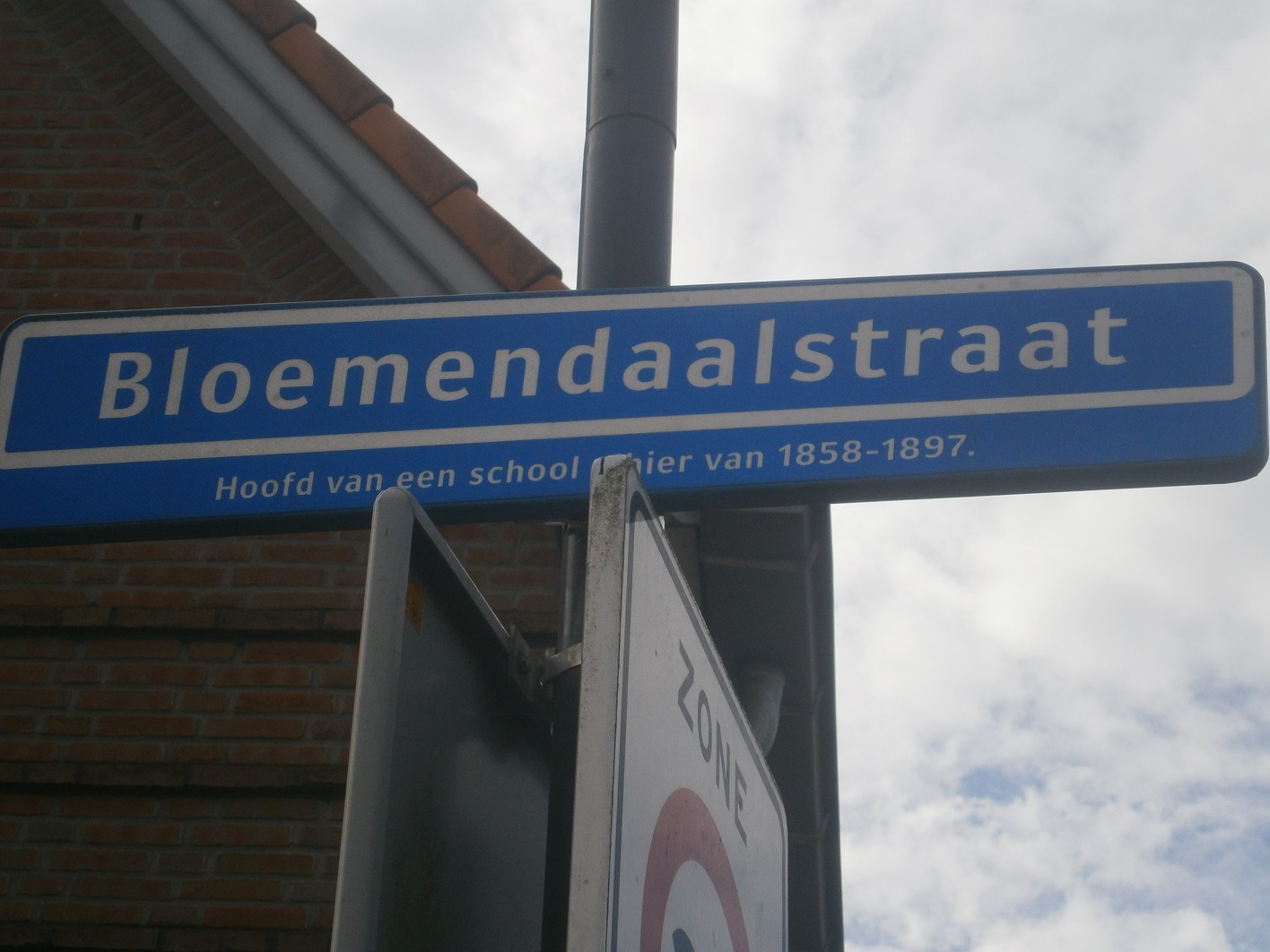 Naar Sander Bloemendaal, geboren 4 februari 1829 te Deventer, overleden 17 maart 1904 te Enschede. Hij trad op 7 augustus 1859 in functie als hoofd van de in 1832 gebouwde school op de hoek van de Haverstraat-Markt (het v.m. kantoor van Van Heek & Co N.V.) als opvolger van Johannes Wijnand Jennes. Per 1 november 1897 werd hij eervol ontslagen. Met Ds. Evers en Deken van Coeverden maakte hij als secretaris deel uit van de hoofdcommissie voor leniging van de nood ontstaan door de brand van 1862 (22 november 1926 voormalig Enschede). bron: http://straatnamen.enschede.nl/straten/00093/?char=B