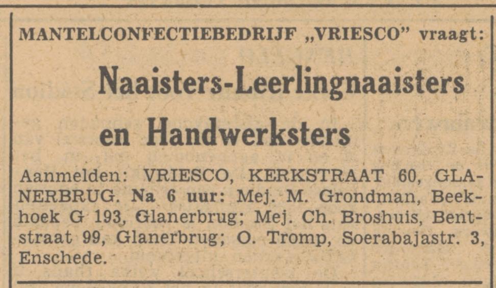 Kerkstraat 60 Glanerbrug Mantelconfectiefabriek Vriesco