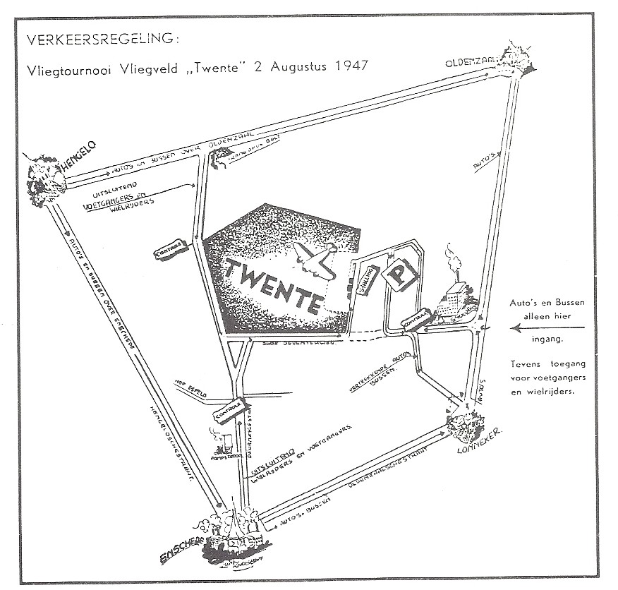 Het is kaartje ten behoeve van de bezoekers aan het vliegtoernooi in verband met de verkeersregeling op 2 Augustus 1947
