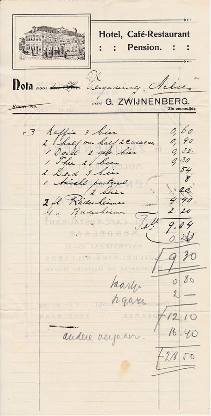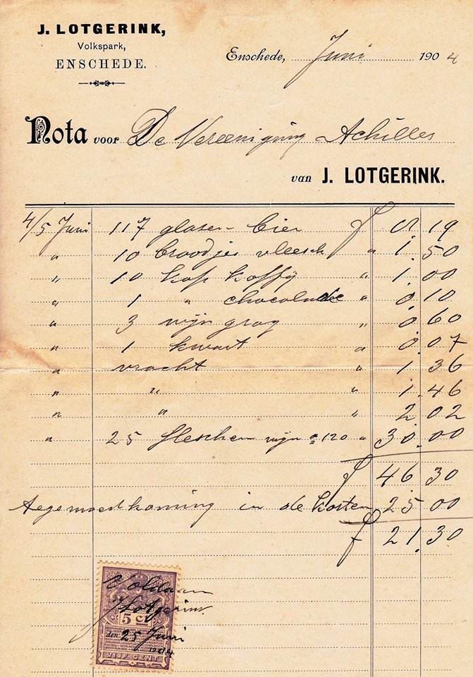 Volkspark restaurant J. Lotgerink rekening juni 1904.