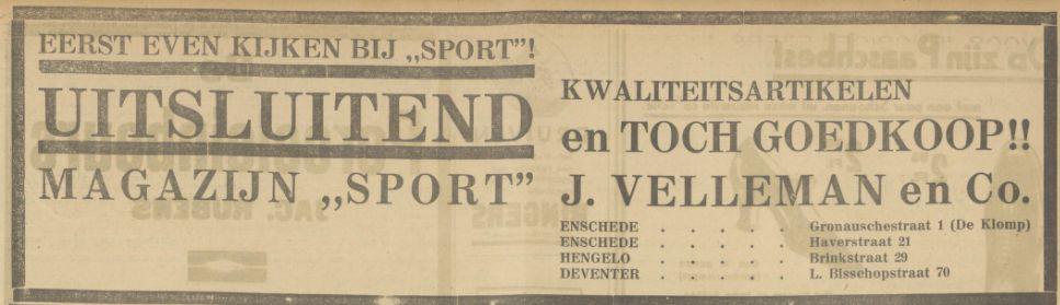 J. Velleman & Co had ook een winkel aan de Haverstraat 21 hoek Langestraat onder de naam Magazijn De Sport.