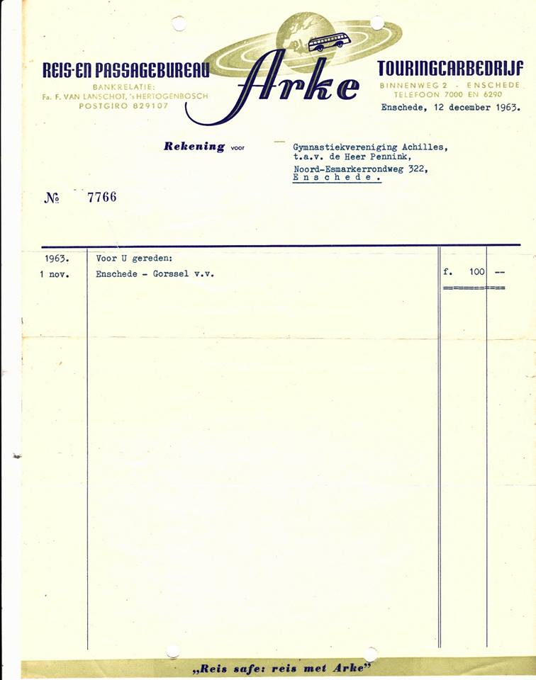 Binnenweg 2 Reis- en Passagebureau Touringcarbedrijf Arke Rekening 12-12-1963.