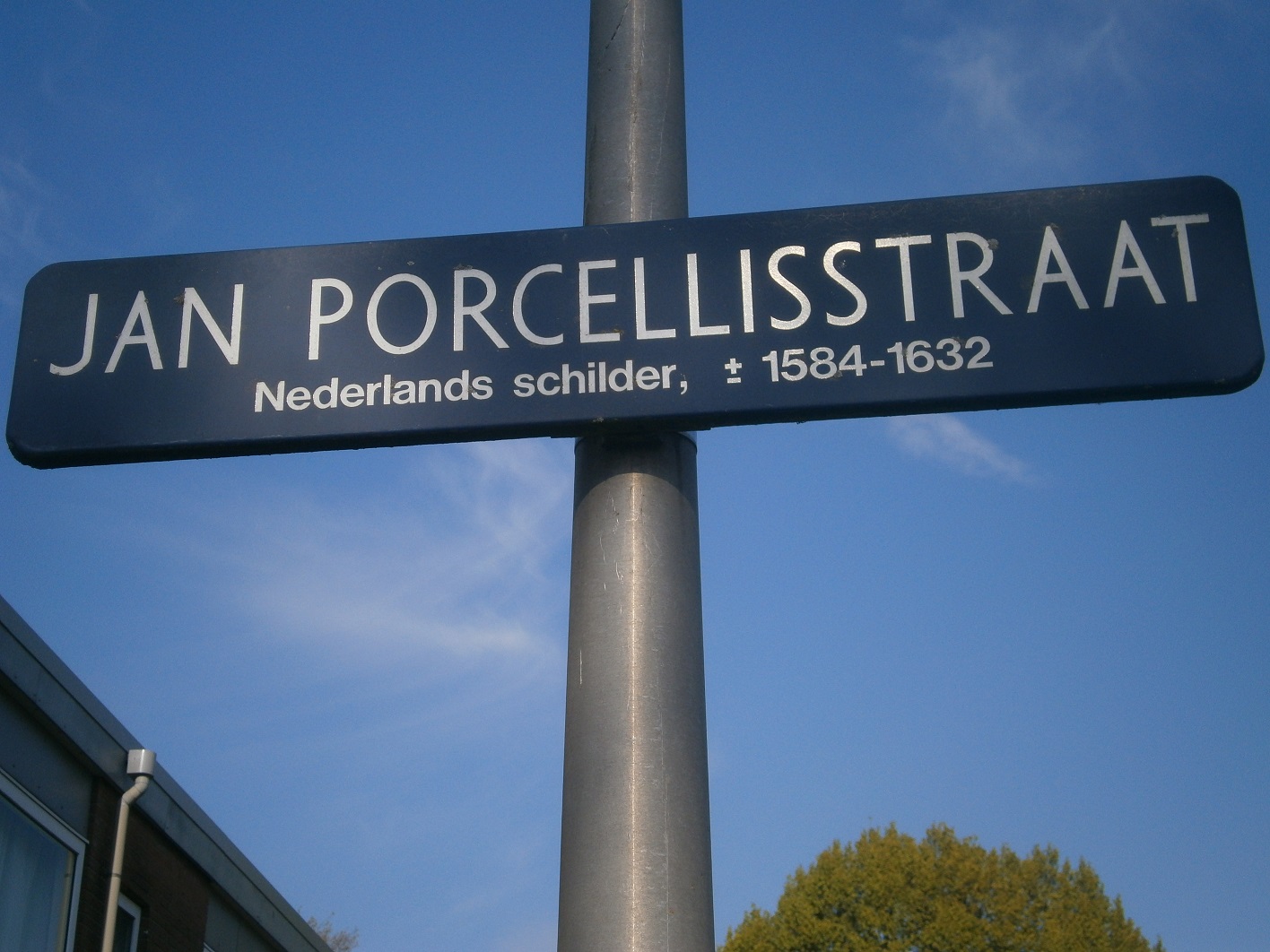 Naar Jan Porcellis, Ned. schilder, geboren circa 1585 te Gent, overleden 29 januari 1632 te Zoeterwoude. Werd door zijn tijdgenoten hoog geschat als de grondlegger der zuivere zeeschilderskunst en is inderdaad ook onder de zeeschilders de baanbrekende meester van het naturalisme (12 november 1956). bron: http://straatnamen.enschede.nl/straten/00781/?char=J#