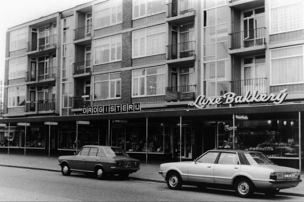 Thomas de Keyserstraat 1976 Drogisterij en Luxe Bakkerij met daarboven appartementen.jpg