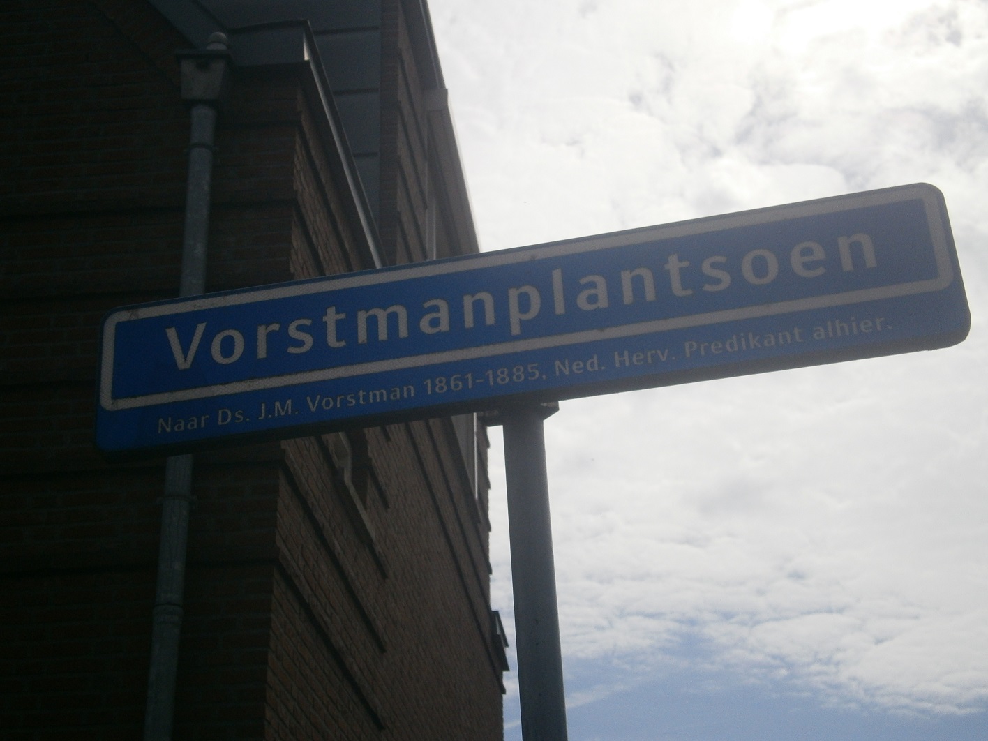 Naar Dr. Johannes Marinus Vorstman, predikant, geboren 26 april 1832 te Rotterdam, overleden 9 juli 1917 te Zutphen. Was van 1861-1885 predikant der Ned. Herv. Gemeente te Enschede en als zodanig geliefd en geacht. Heeft veel voor de burgerij van Enschede gedaan, was bij de stadsbrand van 1862 in diverse commissies werkzaam om de nood der vele behoeftigen te helpen lenigen, en sprak bij de 50-jarige herdenking daarvan in de Grote Kerk een gedachtenisrede uit. Was voorts één van de oprichters van de Volksbibliotheek, alhier (22 november 1926 voormalig Lonneker). 21 september 2004 de naam Vorstmanstraat gewijzigd in Vorstmanplantsoen. bron: http://straatnamen.enschede.nl/straten/01097/