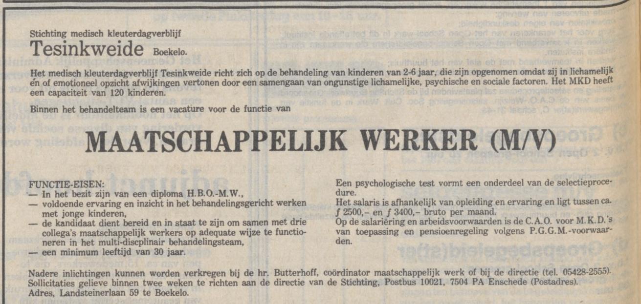 Landsteinerlaan 59 Boekelo vroeger kleuterdagverblijf Tesinkweide. zie: https://www.schoolbank.nl/school/tesinkweide
