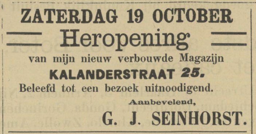 Kalanderstraat 25 magazijn G.J. Seinhorst advertentie Tubantia 17-10-1907.jpg