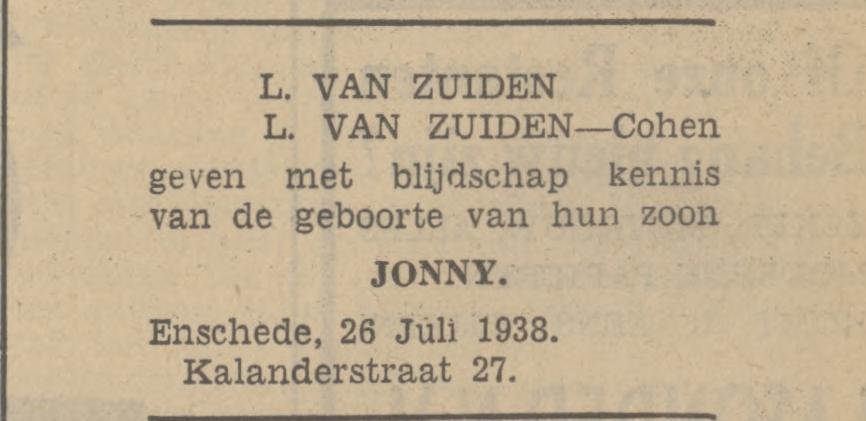 Kalanderstraat 27 L. van Zuiden-Cohan advertentie Tubantia 27-7-1938.jpg