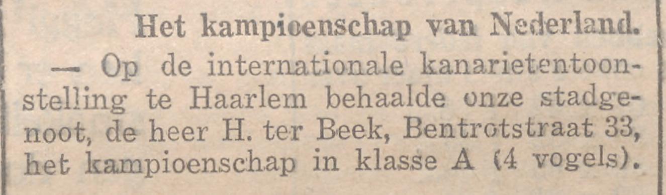 Bentrotstraat 33 H. ter Beek krantenbericht Overijsselsch Dagblad 15-1-1936