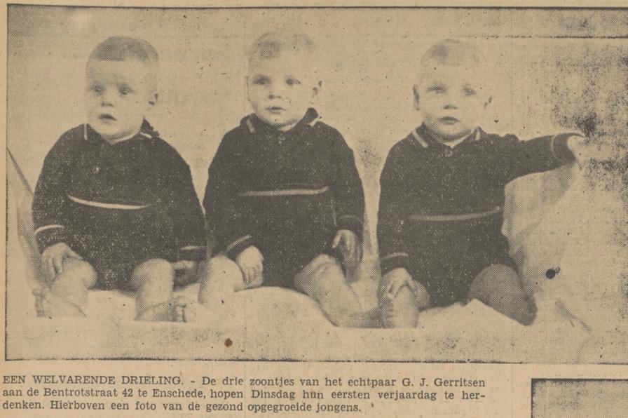 Bentrotstraat 42 G.J. Gerritsen drieling 1 jaar krantenfoto Tubantia 22-2-1936.jpg