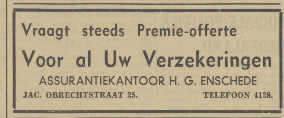 Enschede H.G. kantoorbediende Jacob Obrechtstraat 25 advertentie 12-2-1941