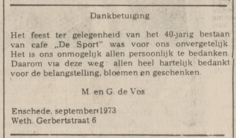 Wethouder Gerbertstraat 6 M. de Vos cafe De Sport advertentie Tubantia 16-9-1973.jpg