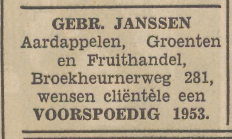 Broekheurnerweg 281 Gebr. Janssen advertentie Tubantia 31-12-1952.jpg