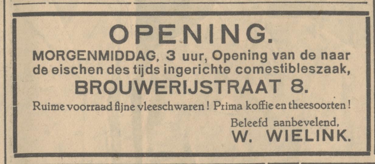 Wielink W. kruidenierswaren Brouwerijstraat 8 advertentie 13-6-1930