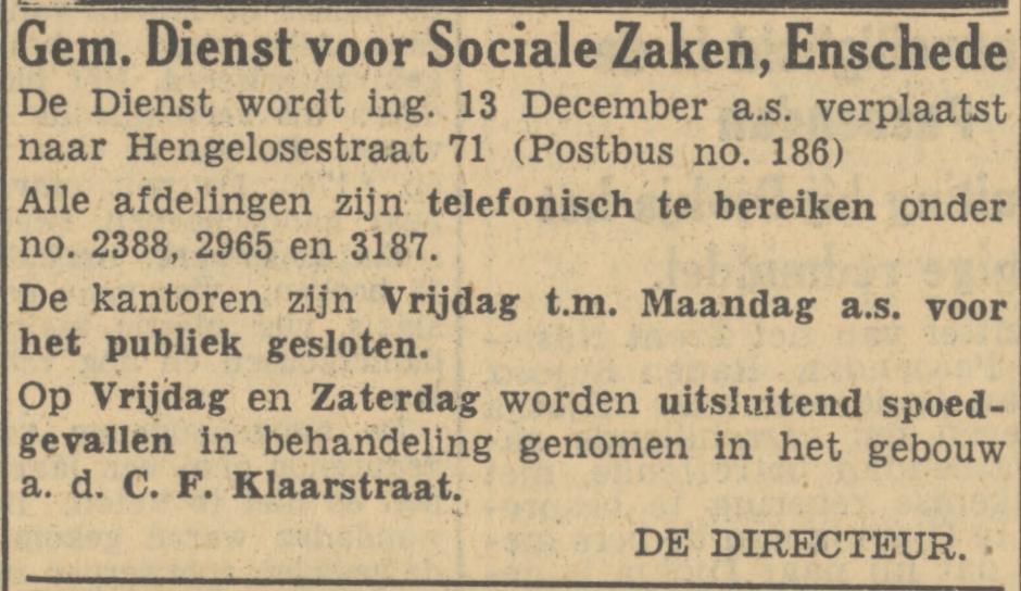 Afd. Soc. Zaken, Hengelosesstraat 71