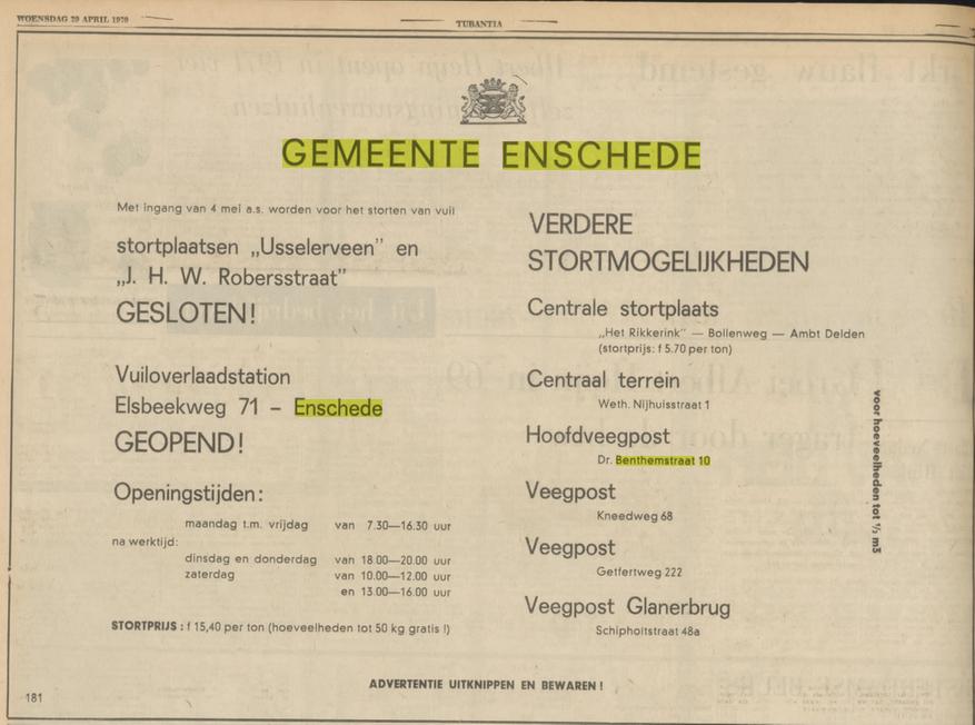 zie ook onderstaand krantenbericht uit de Tubantia van 12-6-1972.