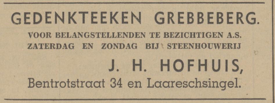 Hofhuis, Steenhouw. J.H. Marmerw., grafmon. enz. Bentrotstraat 34.