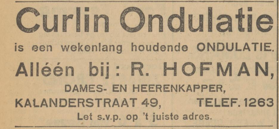 Hofman, Fa. R. Kapper, ped., man., Kalanderstraat 49