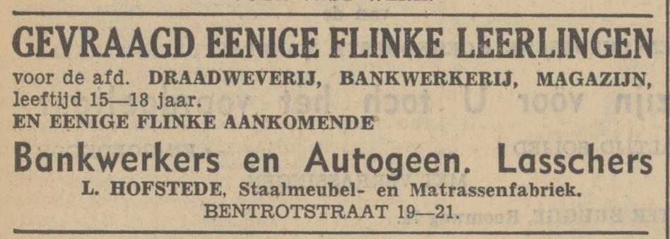 Hofstede, L. Stalen meub., matrassenfabr. enz., Bentrotstraat 15