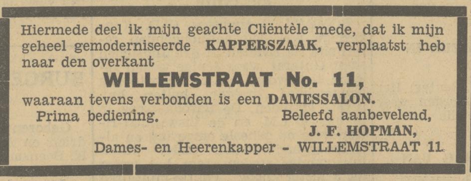 Hopman, J.F. Kapper, Willemstraat 11