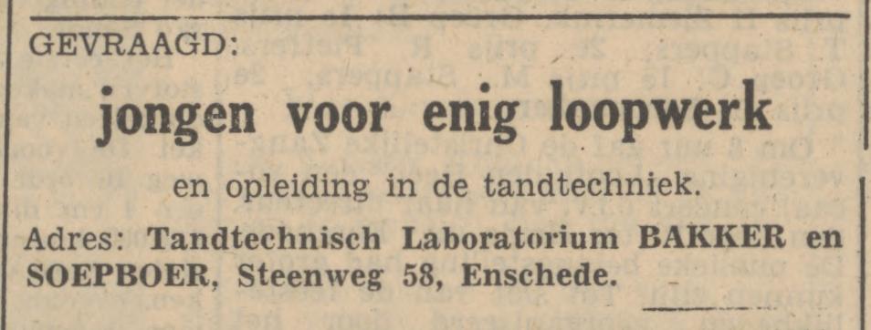 Tandtechnisch Laboratorium, Bakker & Soepboer, Steenweg 58