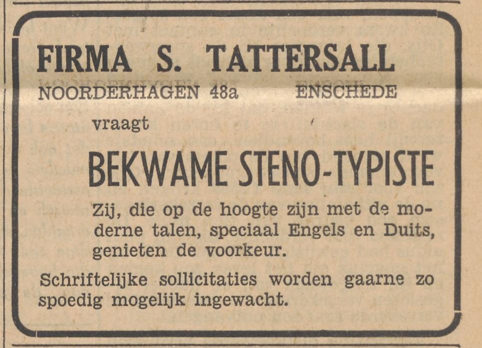 Tattersall, Fa. S. Kunstzijde, mach., electromot., experts en taxat., kantoor, Noorderhagen 48a