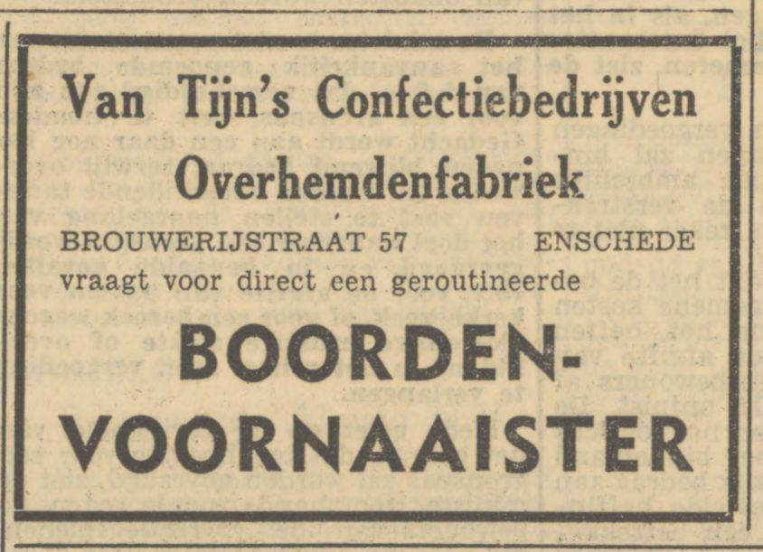 Brouwerijstraat 57 Van Tijn's Confectiebedrijven advertentie Tubantia 12-12-1951.jpg