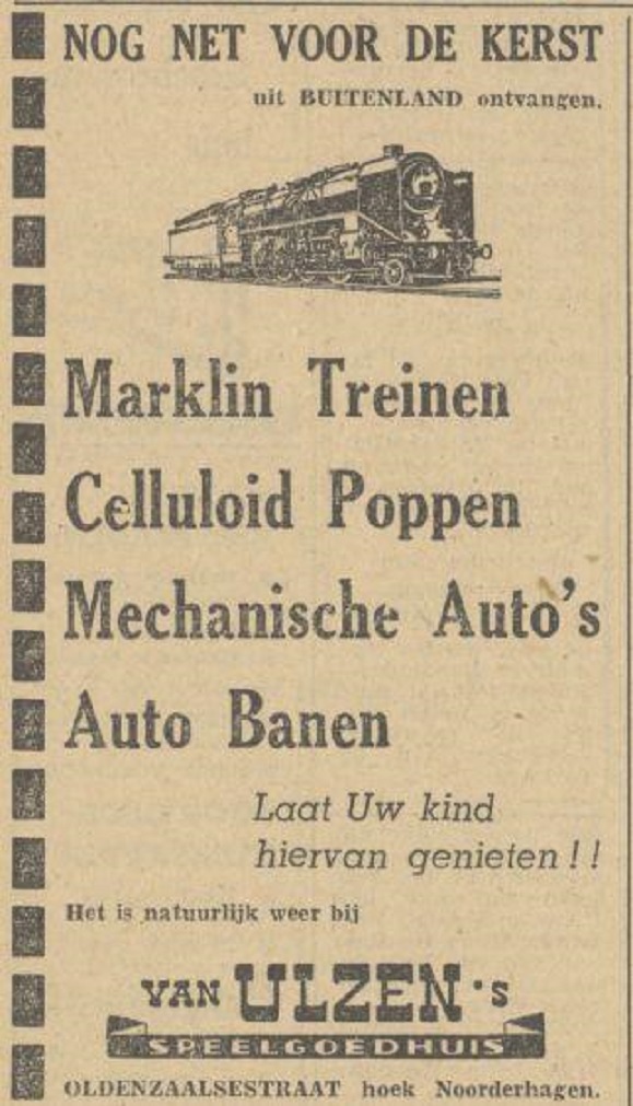 Oldenzaalsestraat hoek Noorderhagen Van Ulzen speelgoedhuis Sinterklaasadvertentie Tubantia 1-12-1948.jpg