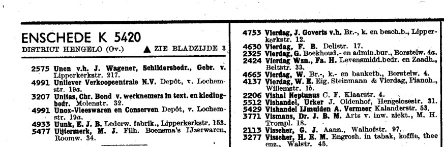 V.A. Vlaanderen heeft zich later gevestigd aan de Drebbelstraat 31 met hetzelfde telefoonnummer 5063.