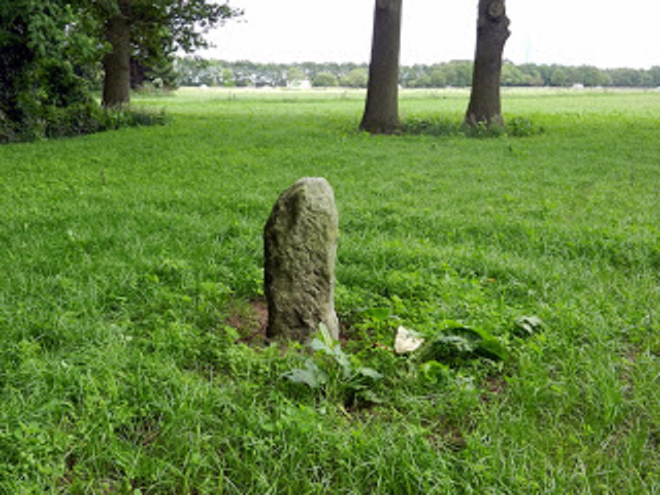 Hij is behoorlijk afgesleten, waarschijnlijk door de koeien met wie hij al lange tijd de wei deelt. De paal stond oorspronkelijk in een bocht van de Oelerbeek; de paal is niet verplaatst, de beek wel. De boerderij Fabelhutte stond iets ten noorden tegen de grens aan, net in Oele. bron: https://www.landschapoverijssel.nl/rout ... e-enschede