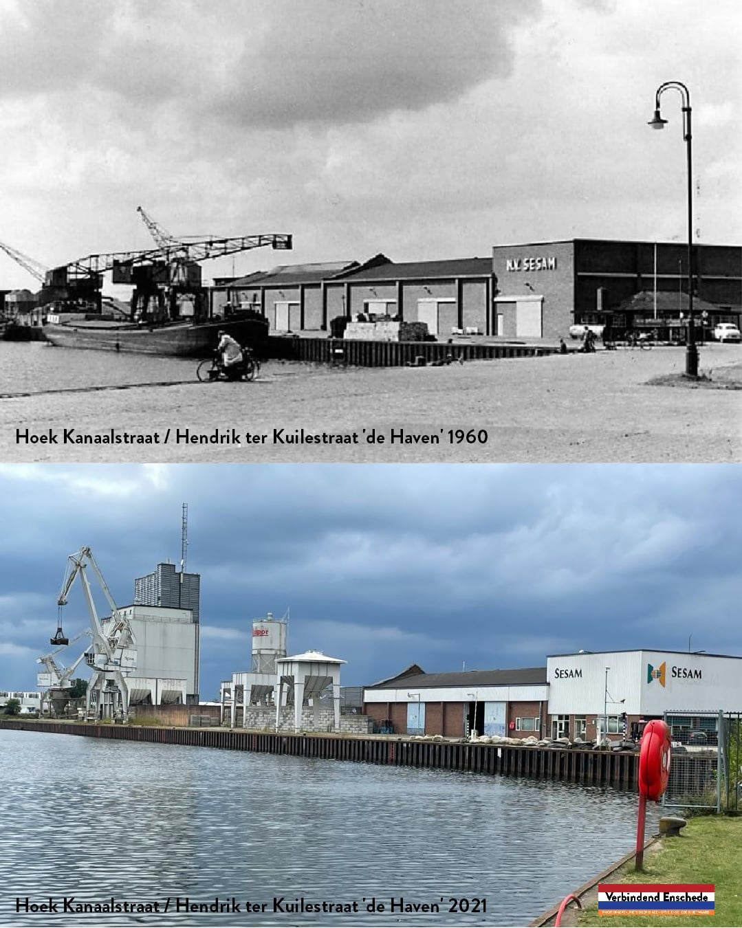 Sesamstraat 1 Kanaalstraat hoek Hendrik ter Kuilestraat de Haven N.V. Sesam 1960 en 2021.jpg