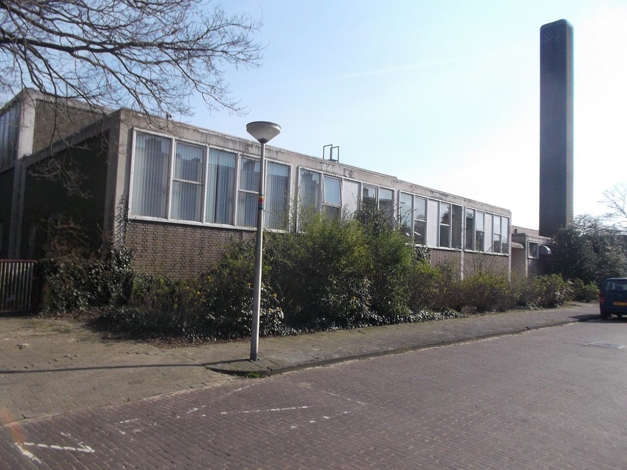 En dit gebouw staat er niet meer. Het is een kale vlakte met groene eilandjes. Eigenlijk wel aantrekkelijk. Maar niet toegankelijk. Er staat nog altijd een hekwerk omheen.